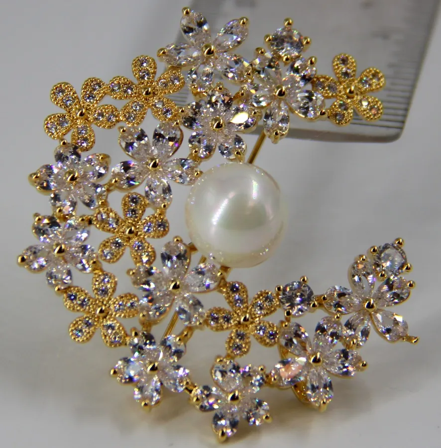 Брошь БМ-10 цветы с бобочкой