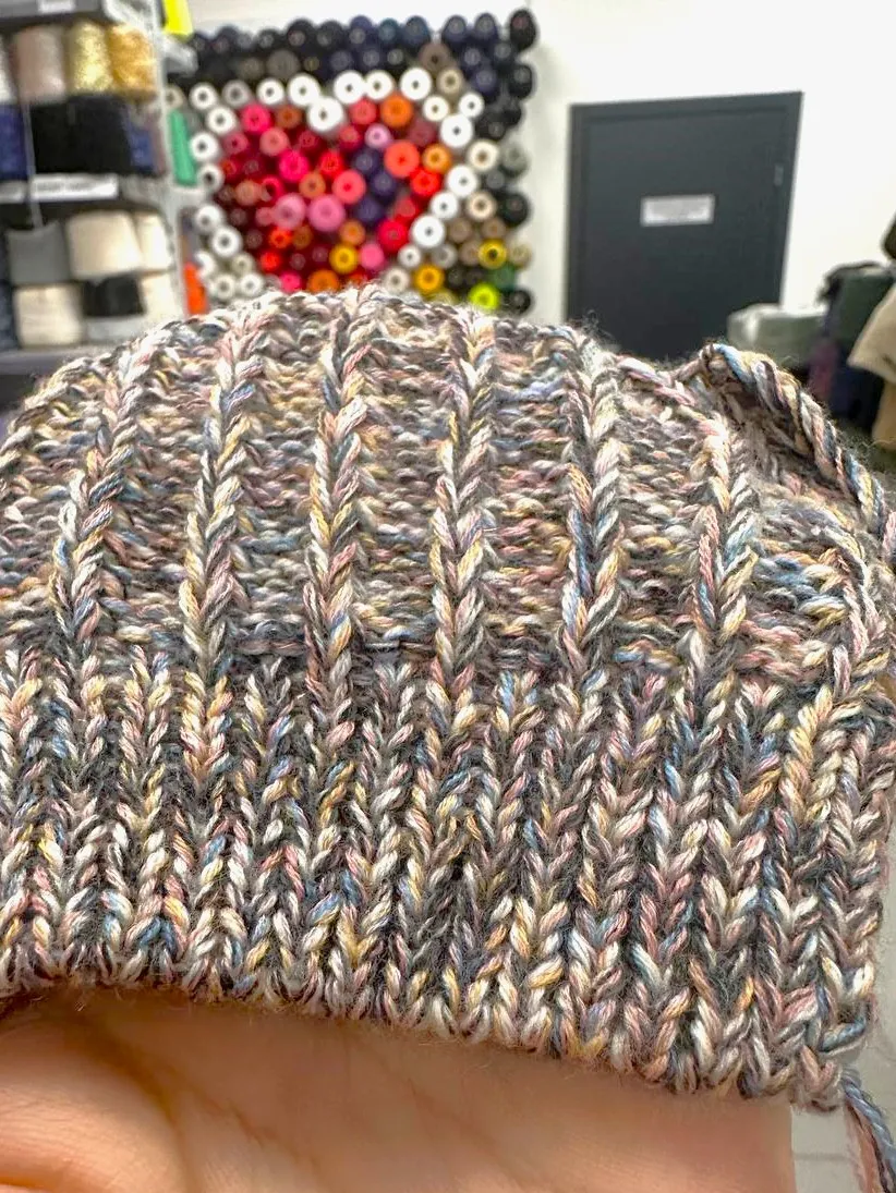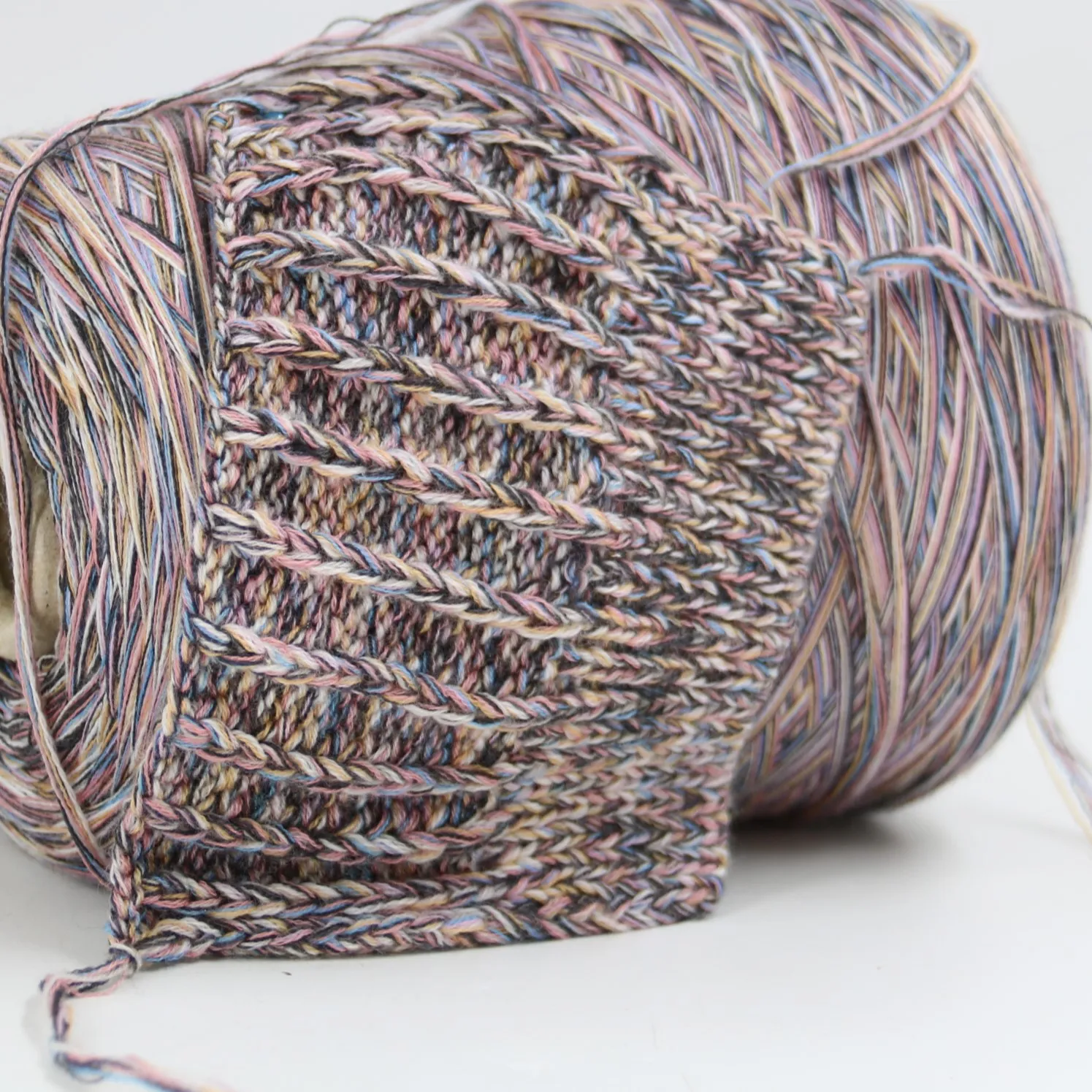 Смотка  тонкого итальянского мериноса в 10-15 ниточек, образец связан на спицах 3-4