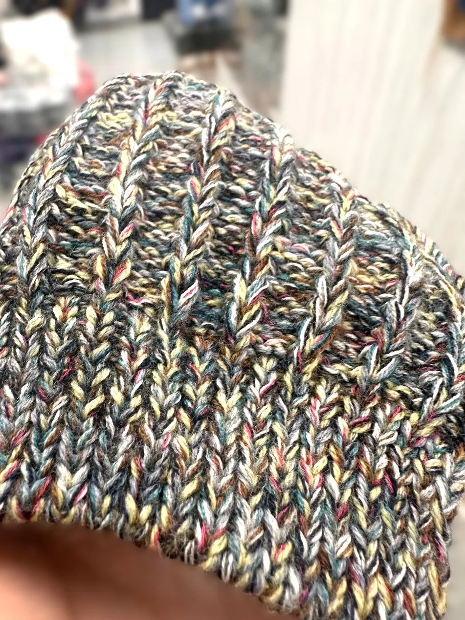 Смотка  тонкого итальянского мериноса в 10-15 ниточек, образец связан на спицах 3-4