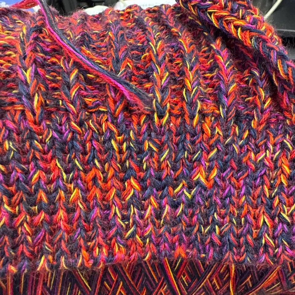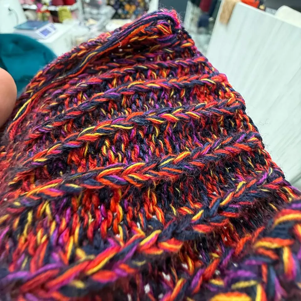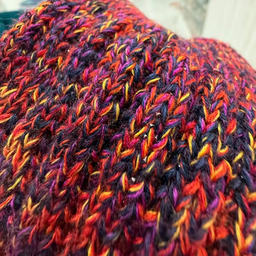 Смотка  тонкого итальянского мериноса в 10-15 ниточек, образец связан на спицах 3-4