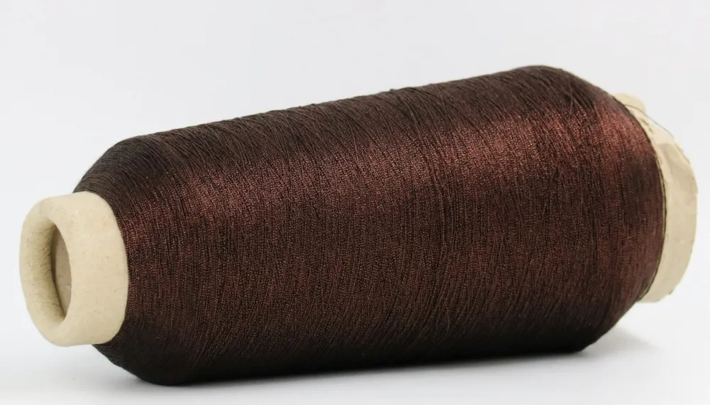 Ниточка из вискозы очень плотно обкручена люрексом.