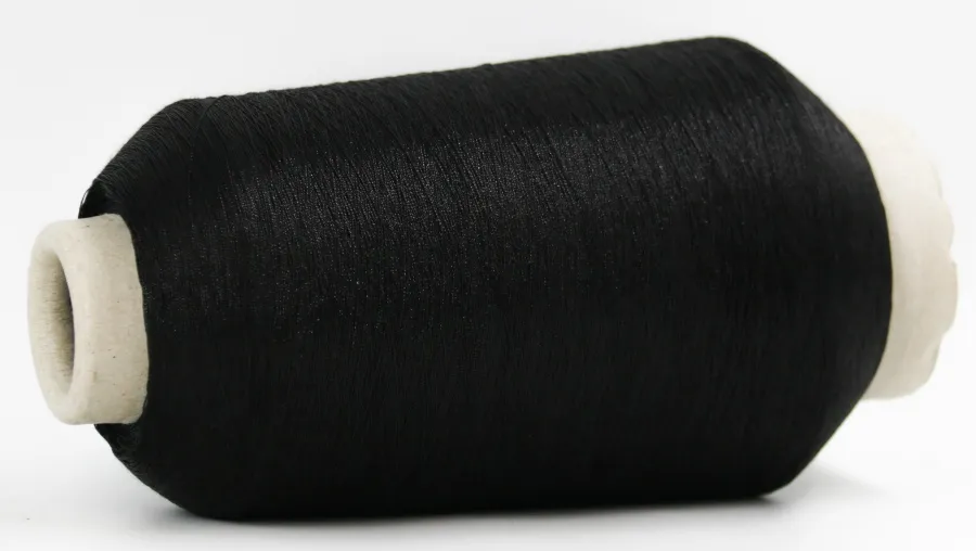 Ниточка из вискозы очень плотно обкручена люрексом.