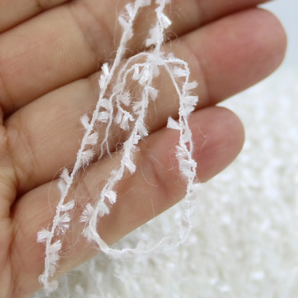 Ниточка мелких бантиков перекручена с ниточкой мохера.