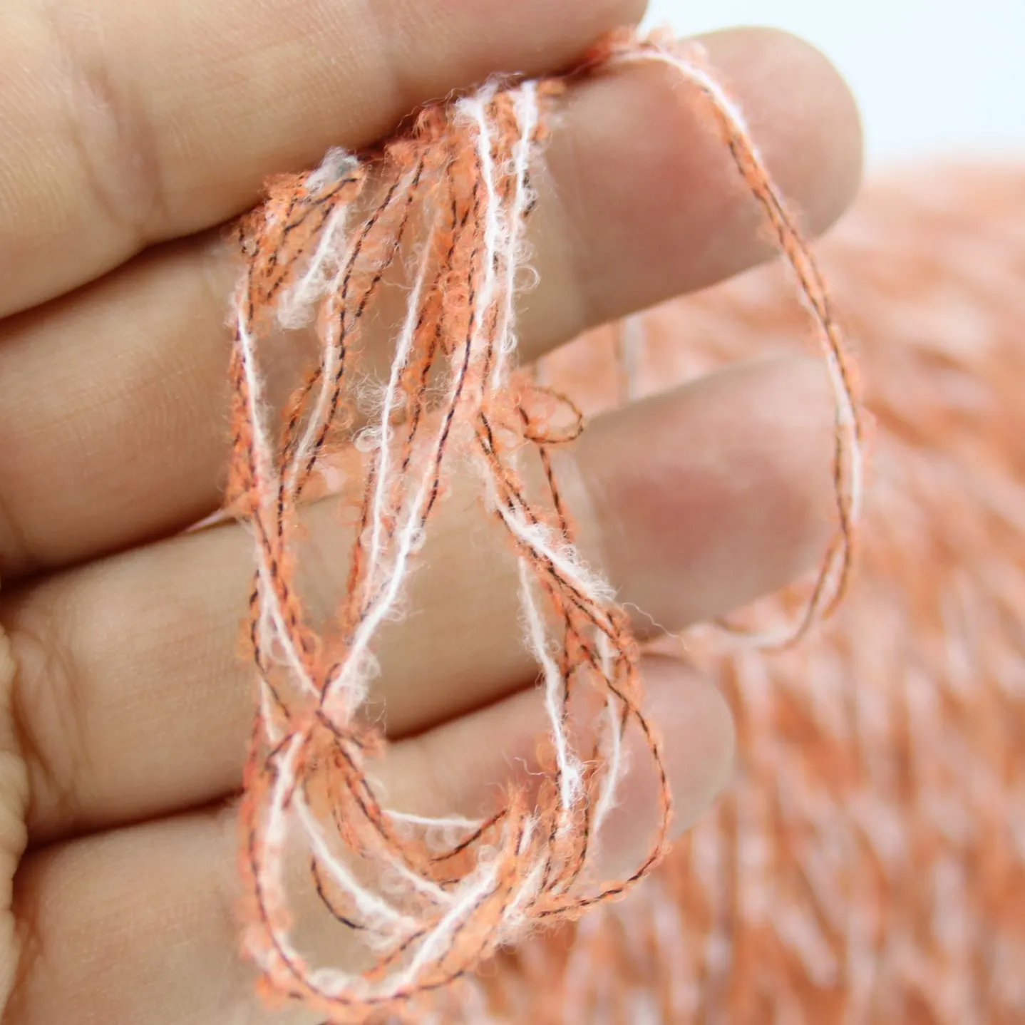 Буклированный меринос на полиамидной основе, фабричная смотка в три ниточки - белый и 2 терракотовых