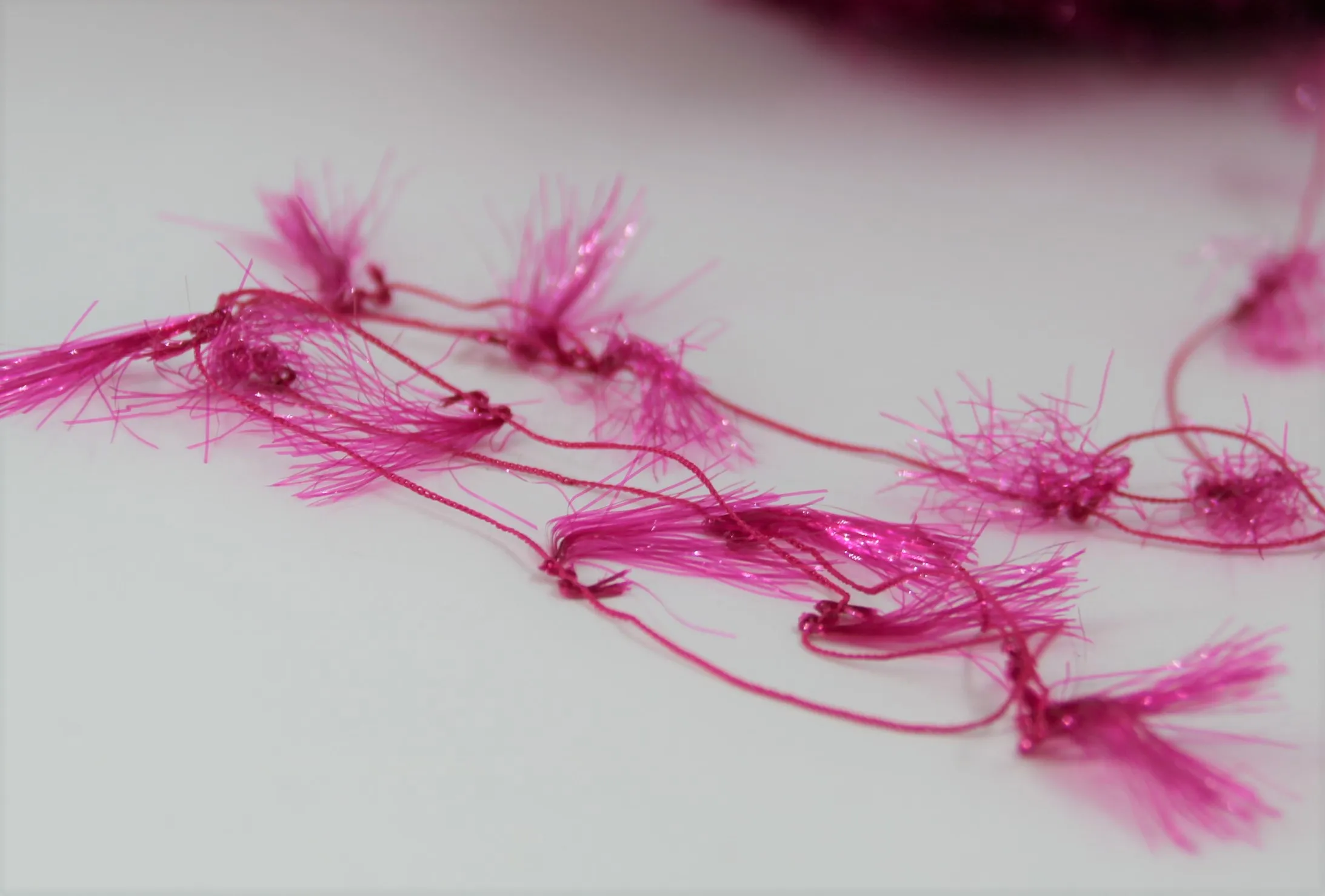 На полиамидной ниточке через равные небольшие промежутки примотаны перышки из тонкого люрекса
